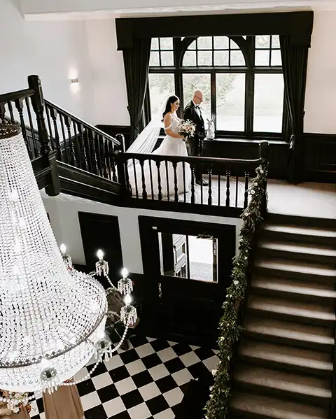 As you enter through the magnificent front door, the sparkling chequerboard floor, iconic crystal chandelier and grand staircase welcome you to Swynford Manor.